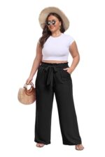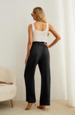 IWOLLENCE Women’s Wide Leg Pants with Pockets High Waist Adjustable Knot Loose Casual Trousers Business Work Casual Pants